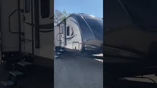 TWO SLIDE OUTS | OUTSIDE KITCHEN WITH STOVE, SINK & FRIDGE I AERODYNAMIC ONE PIECE FRONT CAP I POWER HITCH JACK I LARGE PASS THRU FRONT STORAGE WITH SLAM LATCH DOORS I ALUMA-TRED ENTRY STEPS I LARGE ASSIST HANDLE I UPGRADE FRAMELESS WINDOWS WITH DARK LIMO TINT I POWER AWNING I OUTSIDE SHOWER I SPARE TIRE I 4 HEAVY DUTY LEVELLING JACKS I KITCHEN SLIDE WITH OVERSIZED 8 CU.FT. RV GAS/ELECTRIC FRIDGE I DELUXE STOVE/OVEN WITH FOLDING GLASS TOP I MICROWAVE I HUGE STORAGE CABINETS FOR POTS & PANS I KITCHEN ISLAND WITH EXTRA STORAGE & UNDERMOUNT STAINLESS STEEL SINK WITH HIGHRISE PULL OUT FAUCET I ONE VERY LARGE KITCHEN PANTRY PLUS ANOTHER SMALLER PANTRY CABINET I HIGH END SOLID SURFACE KITCHEN COUNTERS I MAIN SLIDE WITH BOOTH DINETTE INCLUDING HANDY DRAWERS I TRI-FOLD SOFA/BED I ENTERTAINMENT CENTER WITH LARGE FLATSCREEN TV & AM/FM/CD/DVD SOUND SYSTEM I REAR BATHROOM WITH LARGE NEO-ANGLE SHOWER WITH FULL WALL SURROUND AND GLASS DOORS I OPEN LINEN STORAGE CABINET I HUGE WARDROBE/LINEN CABINET OVER THE OUTSIDE KITCHEN I GOOD BATHROOM COUNTERTOP SPACE I PRIVATE MASTER BEDROOM WITH REAL WOOD POCKET DOOR I ISLAND QUEEN BED WITH STORAGE BELOW AND LARGE WARDROBES ON BOTH SIDES I ONE OWNER UNIT IN VERY NICE CONDITION I
