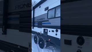 I BIG SLIDE WITH SOFA/THEATRE SEATS AND HUGE HORSESHOE DINETTE I REAR KIDS ROOM WITH KIDS DINETTE AND 4 BUNK BEDS I FRONT MASTER BEDROOM WITH ISLAND QUEEN BED AND REAL WOOD PRIVACY DOORS I ENTERTAINMENT CENTER WITH FLATSCREEN TV AND BLUETOOTH AUDIO SYSTEM I LOTS OF KITCHEN COUNTER SPACE I OVERSIZED 8 CU.FT. RV GAS/ELECTRIC FRIDGE I DELUXE STOVE/OVEN WITH FOLDING GLASS COVER I LARGE KITCHEN PANTRY I MICROWAVE I DOUBLE STAINLESS STEEL SINK WITH HI-RISE FAUCET I PLEATED WINDOW SHADES THROUGHOUT I LARGE TUB/SHOWER WITH FULL WALL SURROUND I LARGE BATHROOM COUNTER SPACE I MANY USB CHARGE PORTS THROUGHOUT I POWER HITCH JACKS I LARGE FRONT PASS THUR STORAGE COMPARTMENT I POWER STABILIZER JACKS I AIRCRAFT STYLE ENTRY STEPS I KEYLESS ENTRY I LARGE FOLD OUT ENTRY HANDLE I FOLD DOWN REAR CARGO/BIKE RACK I SPARE TIRE I OUTSIDE SHOWER I